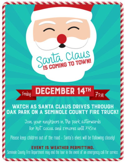 Come out and meet Santa! Then enjoy some hot cocoa with your neighbors in the park!