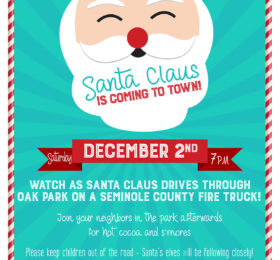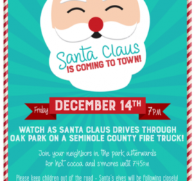 It’s that time of the year again – Santa will make his return to Oak Park this Friday (12/13) at approximately 7PM and is...