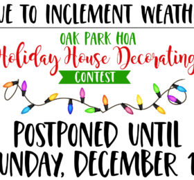 Due to the impending storms rolling in today, judging for our annual Holiday Decorating Contest will be postponed until tomorrow, Sunday,...